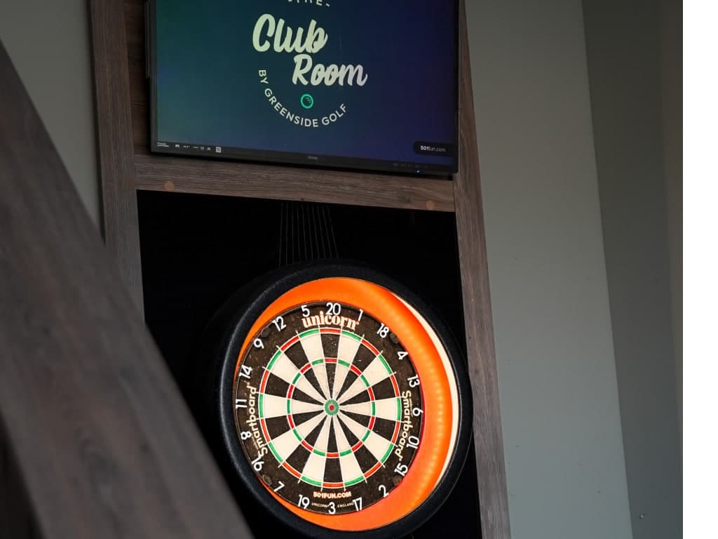 The club room is a space to play with friends – bringing 100s of courses from around the world into one quality indoor golf simulator experience.